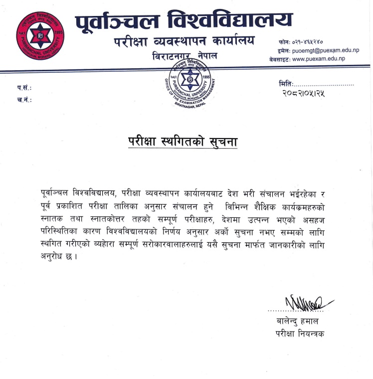 परीक्षा स्थगनसम्बन्धी जरूरी सूचना